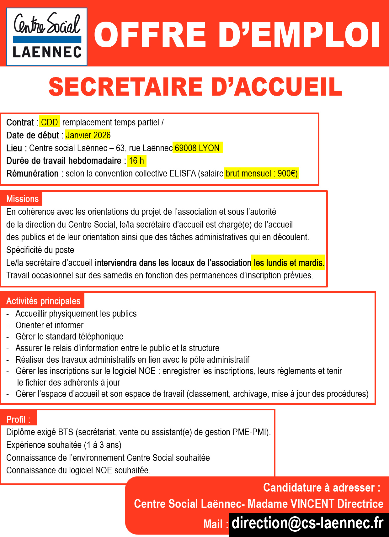 Le centre social Laënnec recherche des postes d’animateurs périscolaires (H/F)